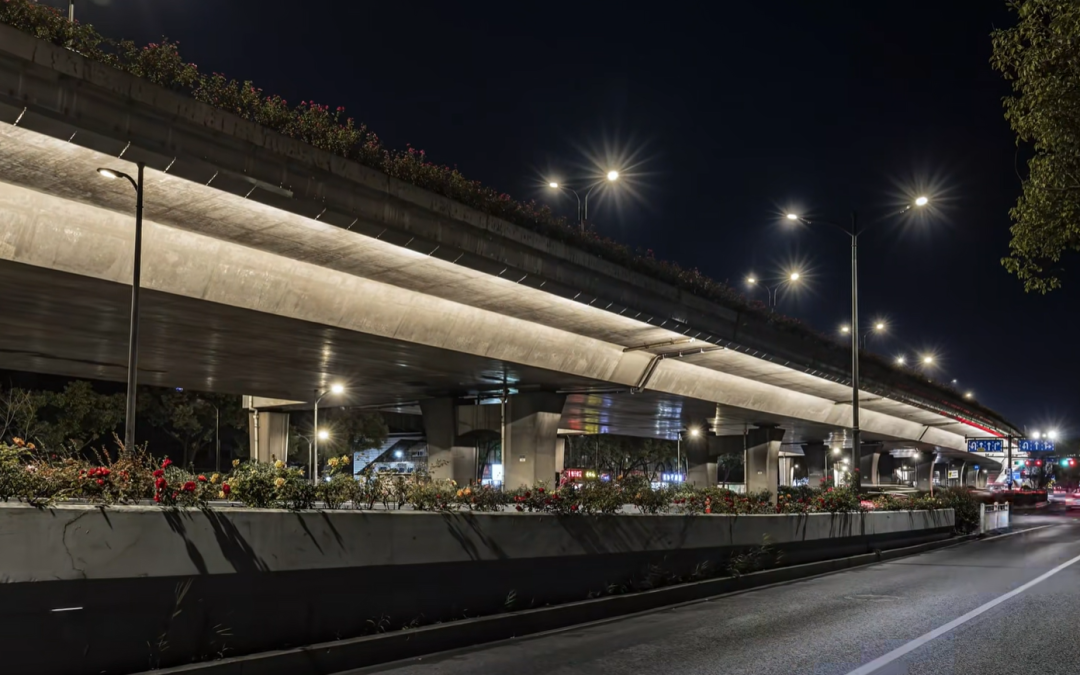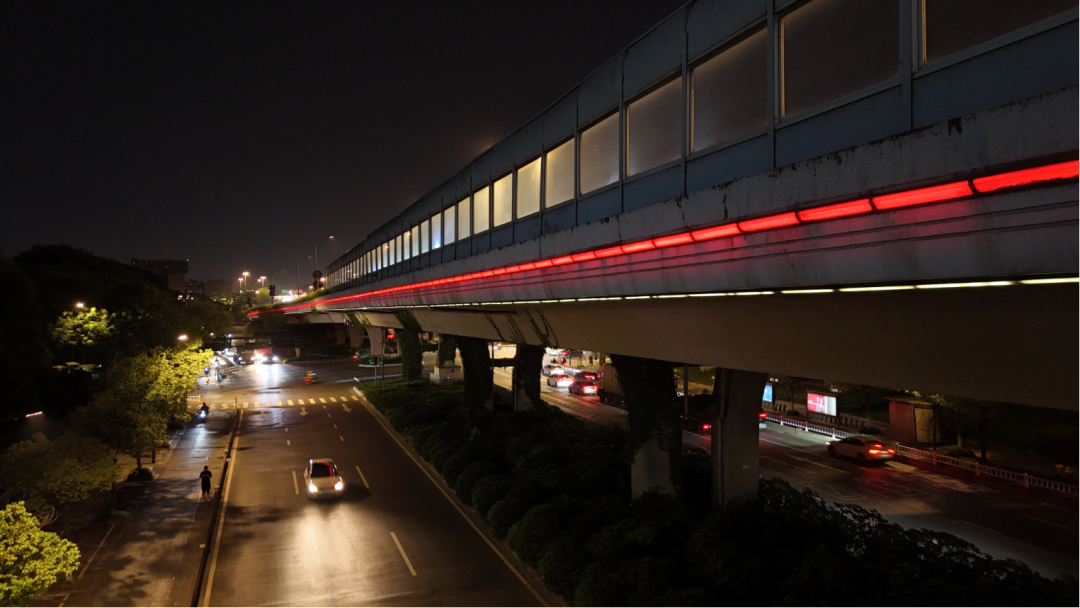 灯光更柔和:结合高架桥混泥土的材质与属性,选用3000K暖白色LED光源,显色指数高,提升视觉舒适度。